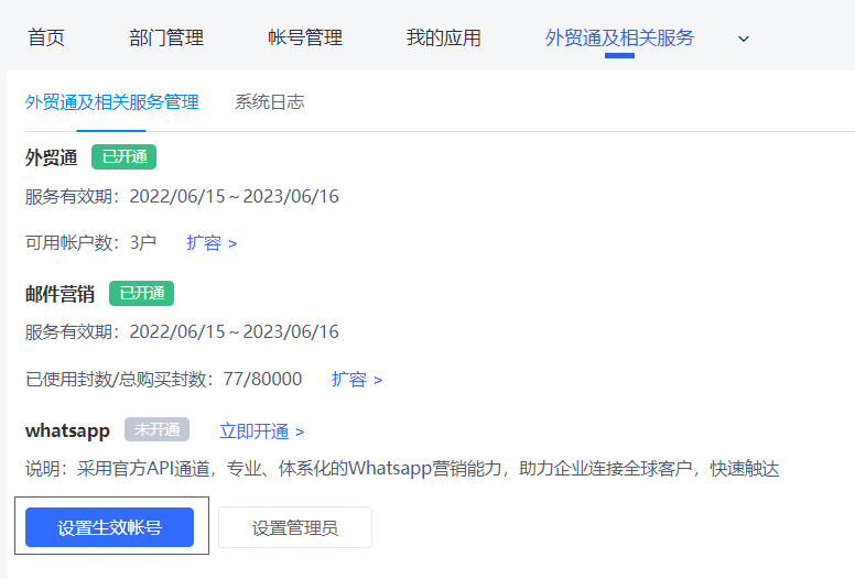 5.设置外贸通管理员,设置后可看到姓名后的(外贸通管理员)提示