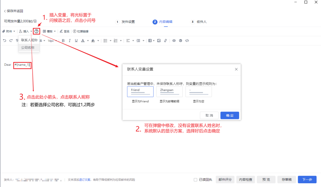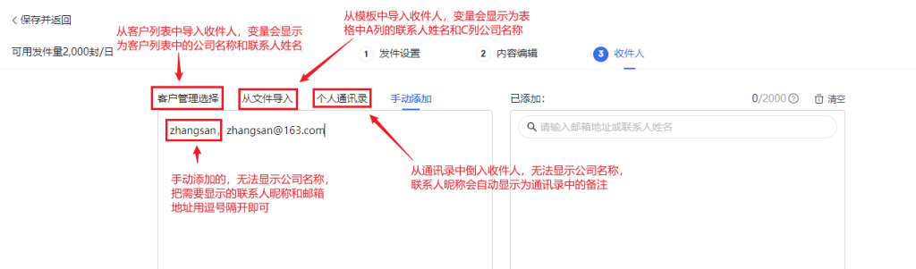 2.在收件人页面设置公司名称和联系人昵称